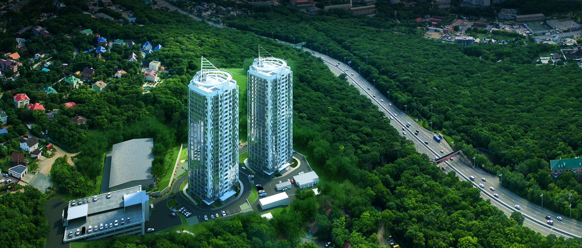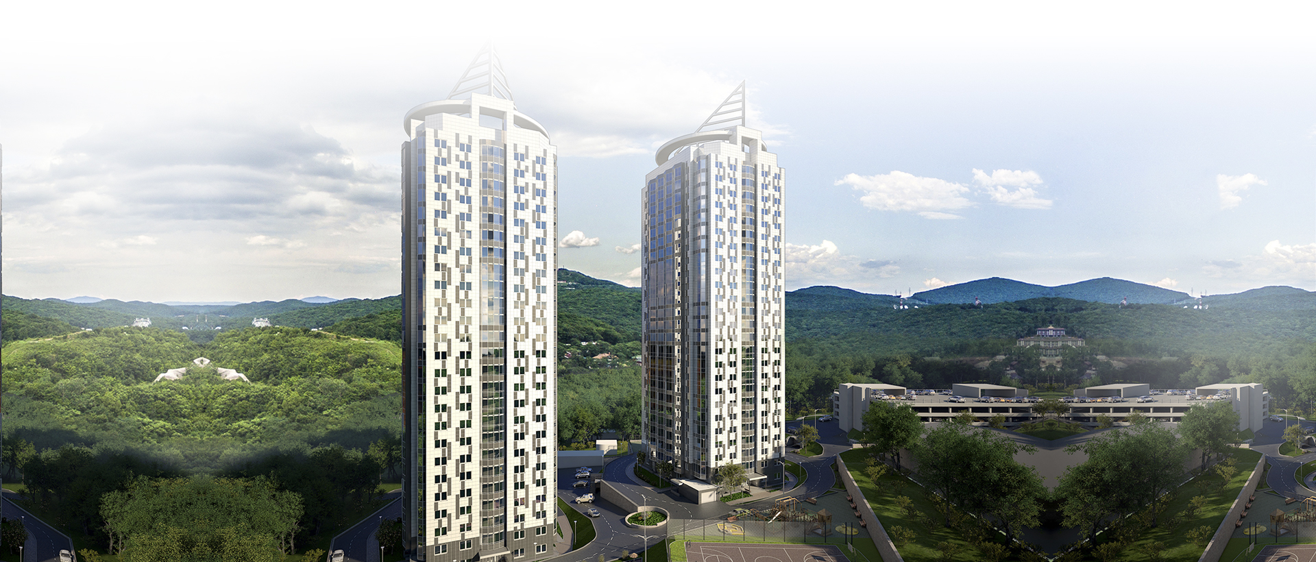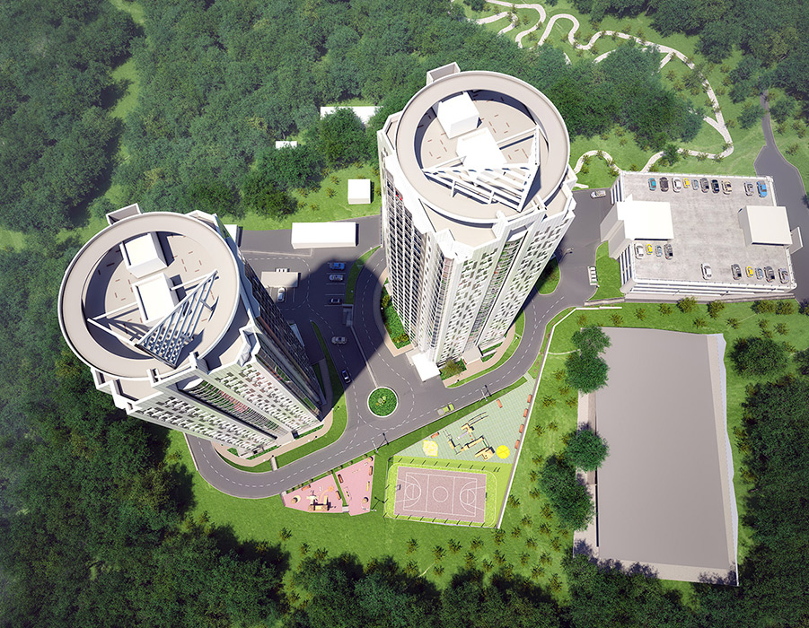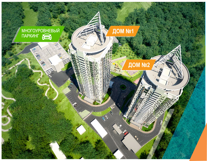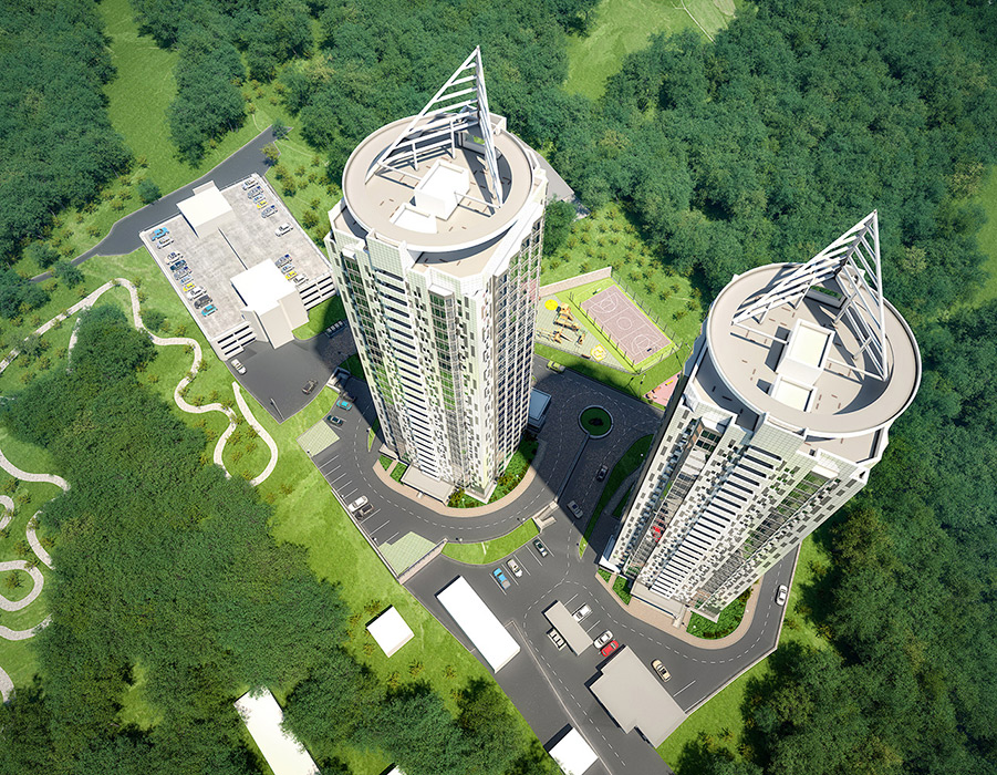 2 монолитных дома высотой в 25 жилых этажей;